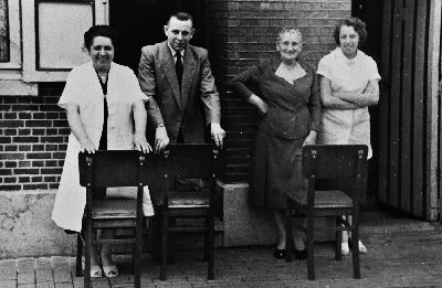 Coiffeuse Mathilde Lemmens met echtgenoot Jan Eeraerts, haar schoonmoeder en dochter Jacqueline